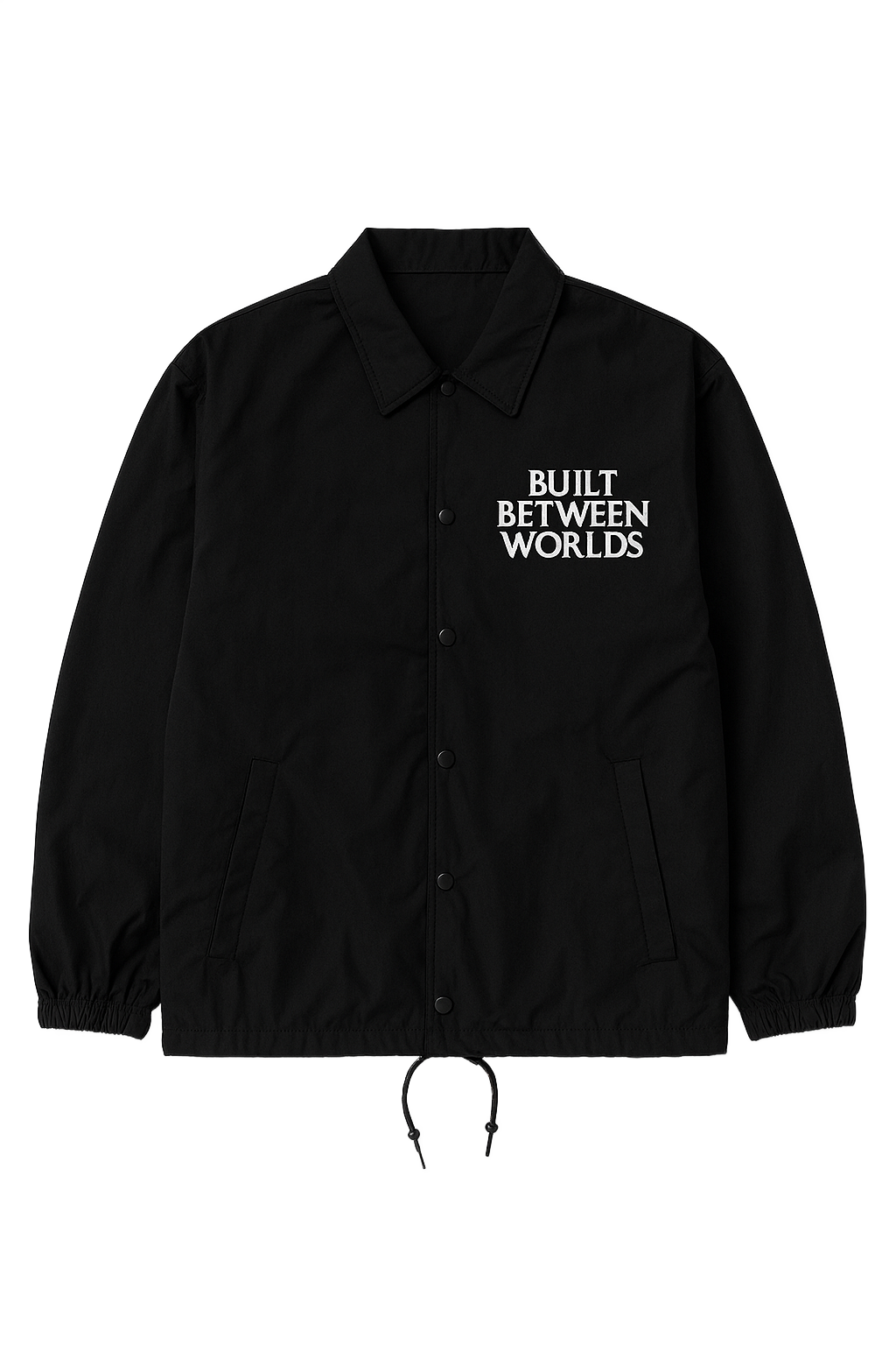 A timeless outer layer built for movement and culture. The classic coach jacket silhouette is elevated with our signature “Built Between Worlds” embroidery on the chest, representing the connection between Tokyo ↔ NYC. Lightweight yet durable, it’s designed for year-round wear—perfect for layering or standing alone as a statement piece.